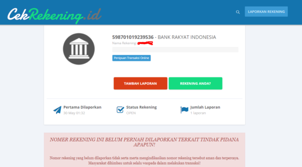 Untuk mengetahui alamat nomor rekening penipu itu bisa dicek identitas nya lewat 4 digit awal no rekening bank itu sendiri.